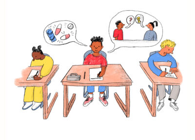 Mitch krijgt medicijnen van de dokter om de gevolgen van zijn ADHD minder te maken.